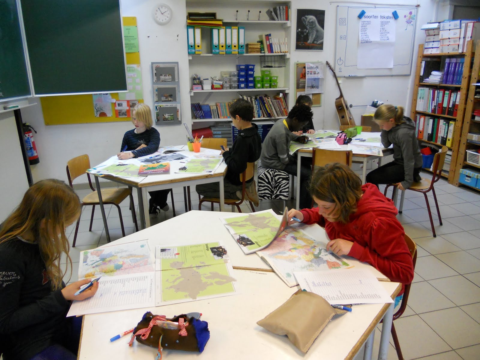 Voor de paasvakantie kregen we gedurende twee weken elke dag 7 verschillende kranten in onze klas: De Morgen, De Standaard, De Tijd, Gazet van Antwerpen, Het Laatste Nieuws, Het Belang van Limburg en het Nieuwsblad. We vergeleken de kranten, ontdekten welke kranten veel streeknieuws brengen, welke kranten veel aandacht besteden aan sport enz. We ontdekten ook welke mensen er allemaal meewerken aan een krant: toch meer dan we dachten. In de krant wordt ook veel aandacht besteed aan buitenlands nieuws. Het nieuws uit de Europese Unie is ook belangrijk voor ons. Hierbij hoorde een atlasopdracht: we moesten alle 27 landen van de EU situeren op een kaart en er de hoofdstad van opzoeken (en ook leren uiteraard).